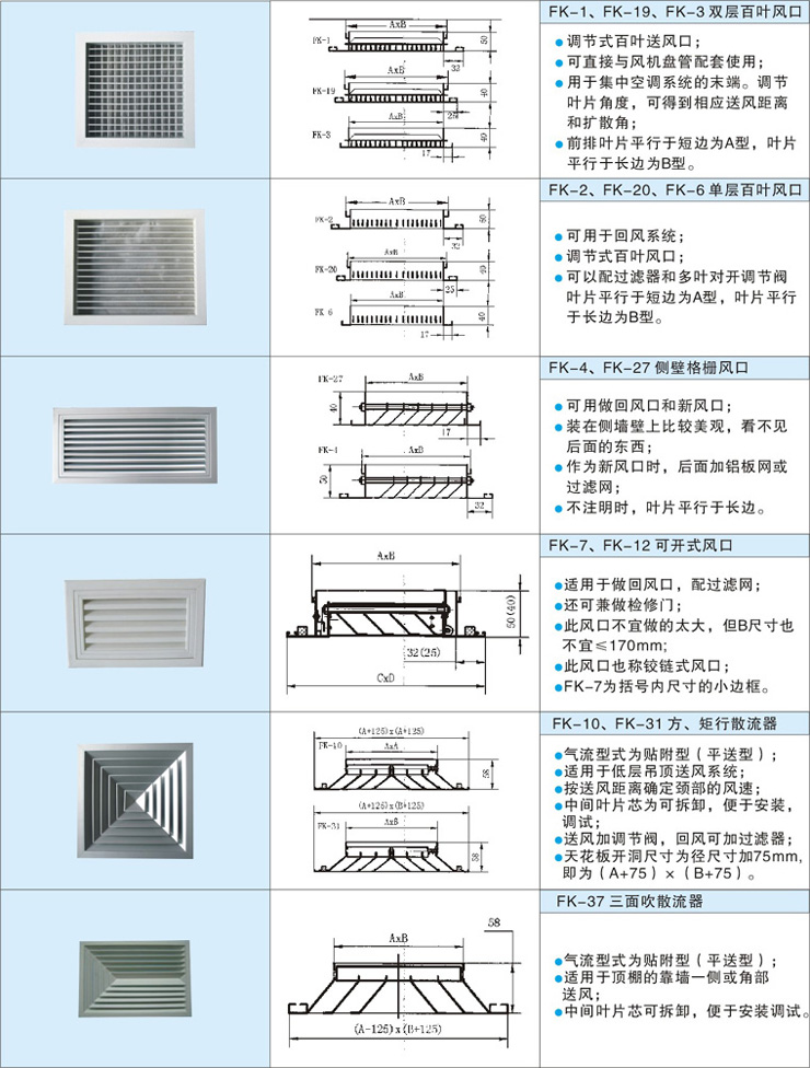 靖江市明皇通风设备厂主要产品为:用于空调系统的各种3C风机、3C排烟风机、3C防火阀,如屋顶通风机,混流风机,排烟风机,高温排烟风机,消防排烟风机,消防高温风机,轴流风机及风机箱,空调机组,变风量空调器、新风机组、风机盘管;用于通风系统的各种风口,散流器,各种阀门、各类消声设备;用于防火排烟系统的手动、自动防火,排烟阀门全自动防烟、防火阀。